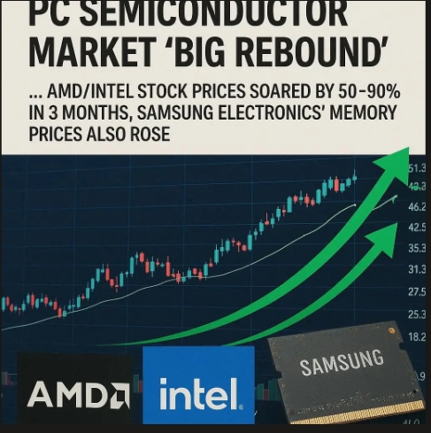 PC 반도체 시장 ‘대반등’...AMD·인텔 주가 3개월 50~90% 급등, 메모리 가격도 동반 상승