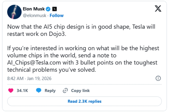 테슬라, AI5 칩 안정화에 ‘도조 3’ 재가동…자율주행·로봇 AI 전략 가속
