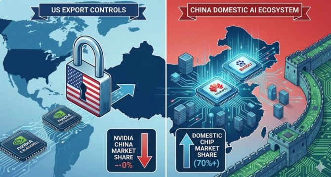 中, 엔비디아 ‘H200’ 주문 중단 보복… 바이두·화웨이 ‘반도체 쇄국’ 70% 장악